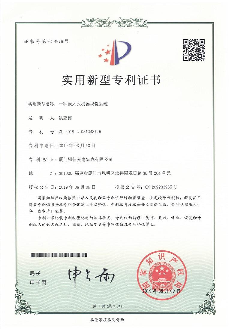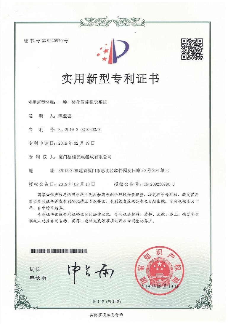 In the first half of 2019, Fuxin Optoelectronics won 3 invention patents, 18 utility model patents and 2 appearance patents. So far, Fuxin Optoelectronics has nearly 60 intellectual patents. Patent achievements are the fruits of technological innovation and practical exploration, which fully demonstrate the company's technological strength in scientific research and development, and enhance the brand image. In recent years, the company has attached great importance to technological innovation, emphasizing that only by keeping pace with the times and innovating continuously can the company continuously enhance its vitality, improve its market competitiveness, continuously create value for customers, and contribute to the development of China's industrial machine vision and artificial intelligence.
